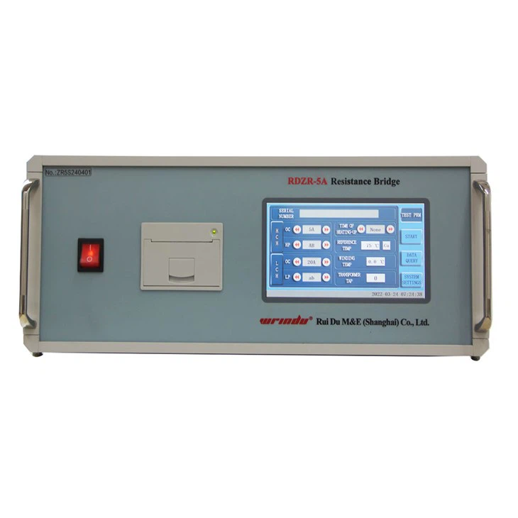 A: The transformer winding resistance tester functions by applying DC (I) to the winding, measuring DC voltage (V) at both ends of the device under test, and then calculating the winding resistance using Ohm’s Law (R = V/I).